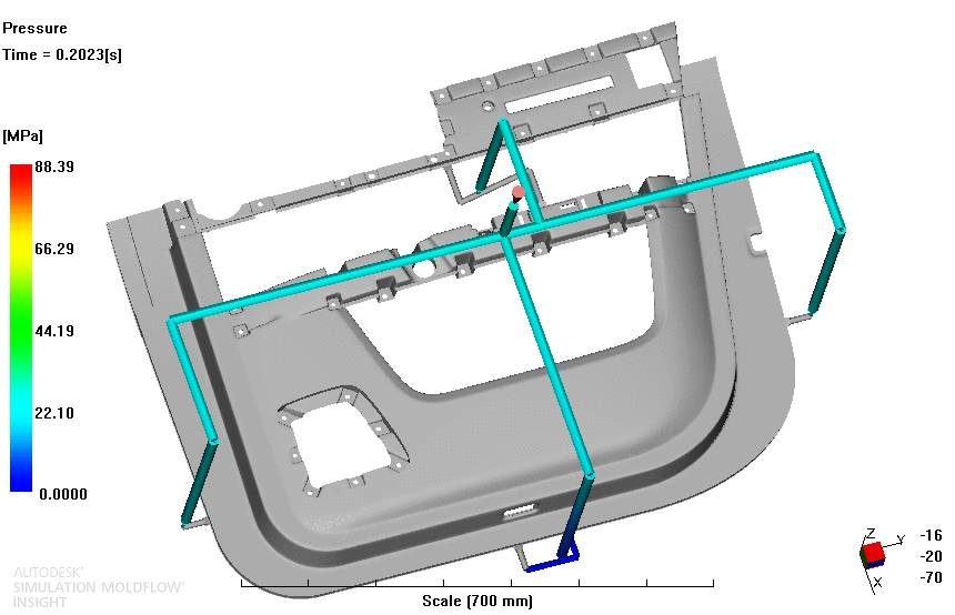順序閥熱流道控製技術(SVG技術)是一種新型級式控製的熱流道技術,通過油缸控製按順序進膠,解決了傳統多點同步進膠的產品出現外觀缺陷的難題。可有效避免汽車內外飾件出現熔接痕,氣穴等缺陷,減少流長,降低成型壓力,在外觀要求嚴格的汽車內外飾件上發揮了巨大的作用。